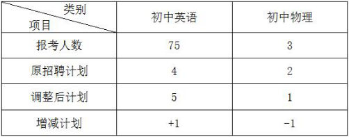 我市初中、小學(xué)、幼兒教師招聘報(bào)名于2016年7月6日截止,因初中物理學(xué)科報(bào)名人數(shù)不足(招聘人數(shù)與報(bào)名人數(shù)之比未達(dá)到1:3),根據(jù)《常寧市2016年公開招聘教師方案》對(duì)其計(jì)劃需進(jìn)行調(diào)整,經(jīng)常寧市教師招聘領(lǐng)導(dǎo)小組研究決定,對(duì)相關(guān)學(xué)科招聘計(jì)劃調(diào)整如下:
