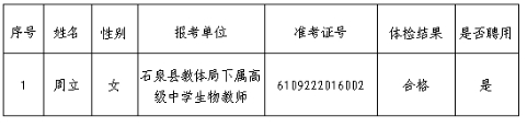 附:石泉縣教體系統(tǒng)2016年公開招聘高層次人才體檢結(jié)果及擬聘用人員名單