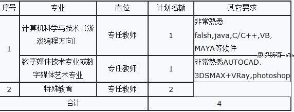 鹽城市特殊教育中等專業(yè)學(xué)校是江蘇省殘聯(lián)系統(tǒng)唯一一所公辦全日制特教中專,系自收自支事業(yè)單位,F(xiàn)因發(fā)展需要,面向社會(huì)公開(kāi)招聘4名編制內(nèi)教師,特制定本方案: