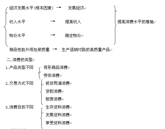 ⑵提高消費水平措施: ①促進經(jīng)濟發(fā)展(根本途徑)