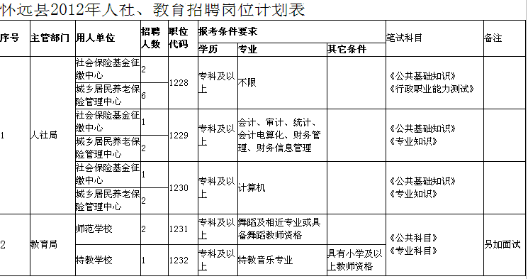 7、職位所需的其他條件(詳見懷遠(yuǎn)縣2012年人社、教育招聘崗位計(jì)劃表)。