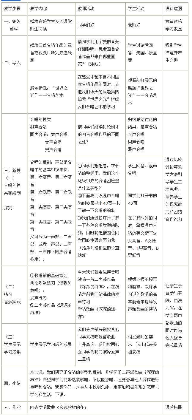 情感目標(biāo):通過欣賞和演唱合唱作品,培養(yǎng)學(xué)生感受人聲的豐富表現(xiàn)力與美感,積極參與實(shí)踐活動(dòng),從而使學(xué)生熱愛生活,熱愛生命。