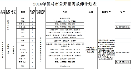 二0一六年侯馬市教育科技局招聘計(jì)劃表