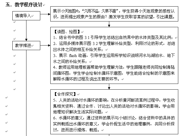 2、案例分析法:(黃河斷流問題)通過案例分析讓學生認識到人類活動可以對水循環(huán)的環(huán)節(jié)產(chǎn)