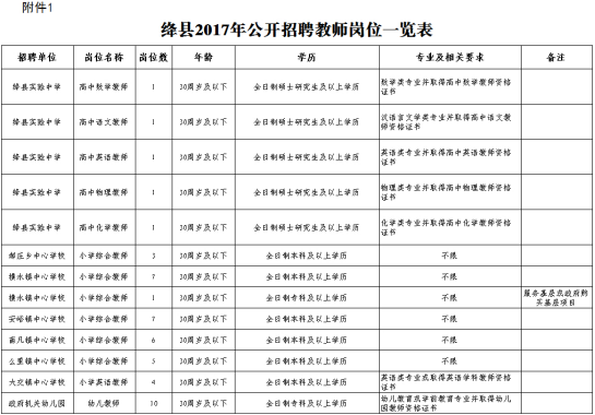 附:《絳縣2017年公開招聘教師崗位一覽表》