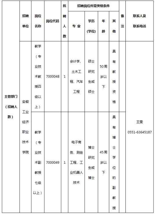 聯(lián)系電話:0551-63645187 學(xué)院人事處 王雯
