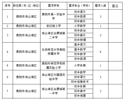 貴州省貴陽市觀山湖區(qū)教育系統(tǒng)招聘2018屆免費師范生公告