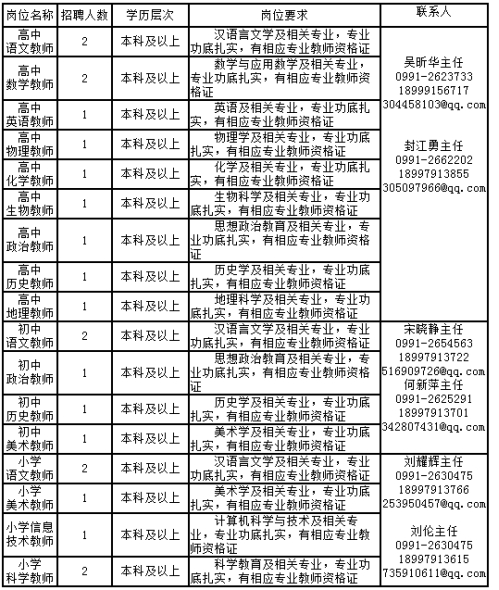 根據(jù)學(xué)校發(fā)展和教育教學(xué)的實際需要,兵團二中決定面向全國公開招聘部分學(xué)科優(yōu)秀教師。現(xiàn)公告如下: