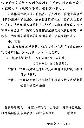 湖北省荊門市屈家?guī)X管理區(qū)2018年農(nóng)村義務(wù)教育學(xué)校教師招聘公告