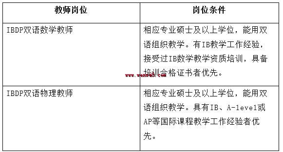 擬招聘IBDP雙語數(shù)學、物理教師各1名。