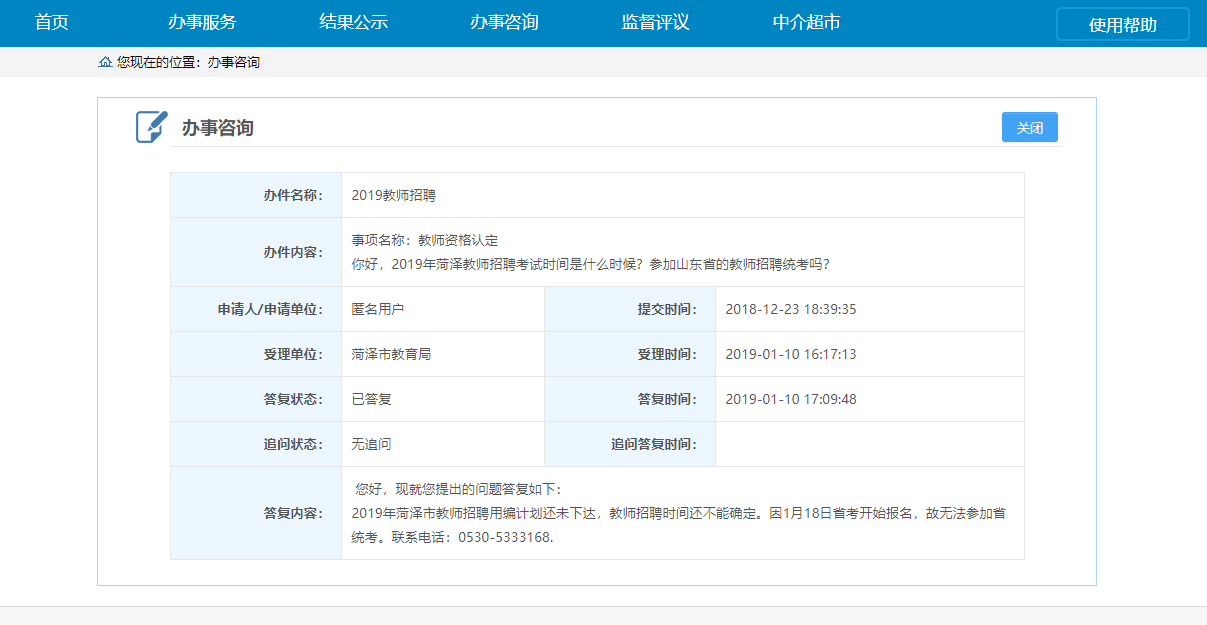 辦件內容:你好,2019年菏澤教師招聘考試時間是什么時候?參加山東省的教師招聘統(tǒng)考嗎?