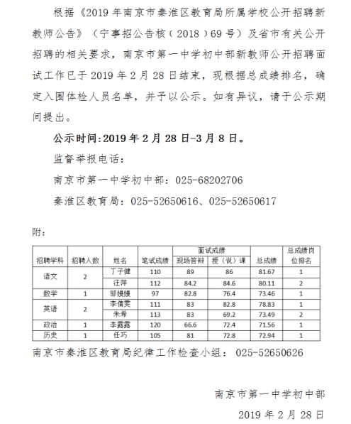 謹防受騙提示:如果報名時出現(xiàn)收費或匯款等情況,請廣大考生注意分辨真?zhèn),謹防上當受騙 特別說明:由于各方面情況的不斷調(diào)整與變化,文武網(wǎng)所提供的所有考試信息僅供參考,敬請考生以權(quán)威部門公布的正式信息為準。 本站教師招聘信息來自各地人社局、政府網(wǎng)、人事考試網(wǎng)、教育局、高校、中小學等官方信息,快速及時、權(quán)威可靠。如果有侵犯版權(quán)請qq:3412729300聯(lián)系我們,我們將在24小時之內(nèi)刪除! |