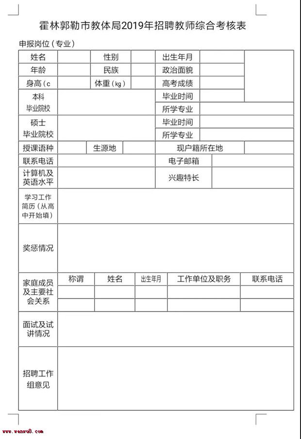 附件:霍林郭勒市教體局2019年招聘教師綜合考核表(此表請到郵箱:renshishizi7966817@126.com自行下載,郵箱密碼:13947575984)。