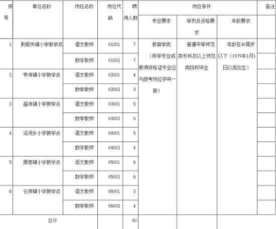 本次公開(kāi)招聘鄉(xiāng)鎮(zhèn)教學(xué)點(diǎn)教師60名(詳見(jiàn)職位表)。
