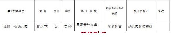 根據(jù)《2019年豐順縣教育、衛(wèi)生系統(tǒng)事業(yè)單位公開招聘人員公告》,經(jīng)過發(fā)布公告、報名、筆試、資格審核、面試、體檢、考察等程序。經(jīng)審核,擬聘用以下同志為豐順縣教育系統(tǒng)事業(yè)單位工作人員,現(xiàn)予以公示。