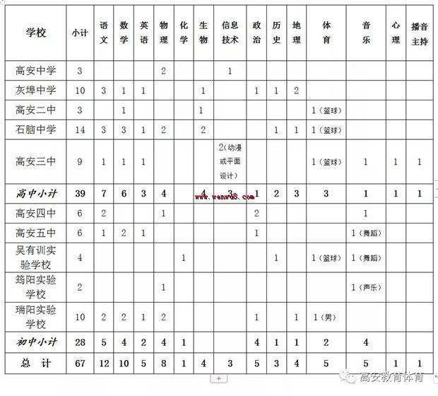 根據(jù)教學(xué)需要,經(jīng)市委人才工作領(lǐng)導(dǎo)小組同意,高安市直屬學(xué)校擬面向高校和社會(huì)招聘部分緊缺學(xué)科教師,F(xiàn)公告如下: