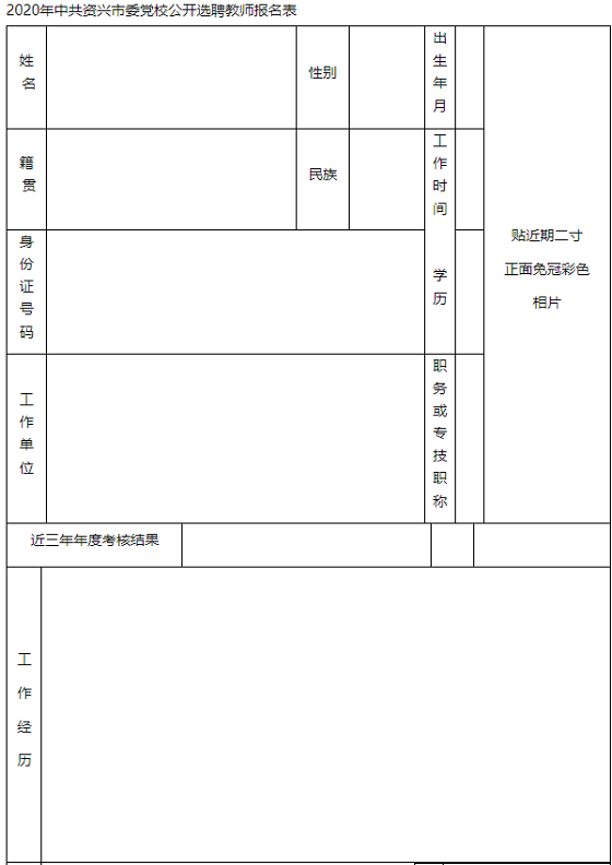 附件1:《2020年中共資興市委黨校公開選聘教師報(bào)名表》