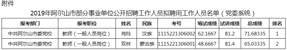附件:2019年阿爾山市部分事業(yè)單位公開招聘工作人員擬聘用人員名單(黨委系統(tǒng))