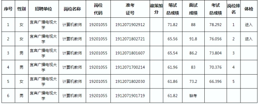 四川宜賓市市屬事業(yè)單位2019年第二次公開考試招聘工作人員考試總成績及排名的公告(第三批)