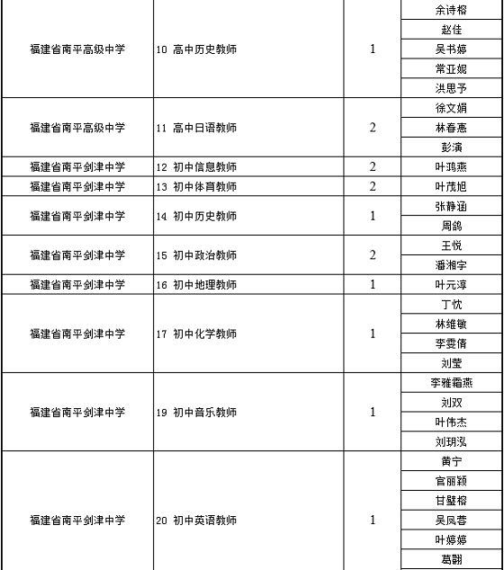 福建教師招聘 南平市屬中小學(xué)2020年第三屆“人才南平校園行”專項教師招聘擬進入面試人員名單