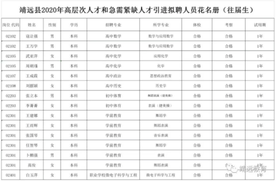 甘肅白銀靖遠(yuǎn)縣教育系統(tǒng)2020年高層次人才和急需緊缺人才引進(jìn)擬聘人員(往屆生)公示