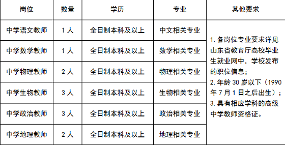 山東教師招聘 淄博市育才中學2020上半年教師招聘【12人】