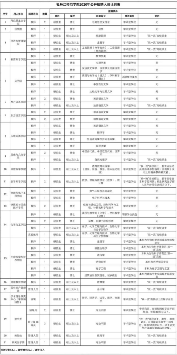 黑龍江牡丹江師范學(xué)院2020年教師招聘公告【54人】報名時間為5月18日-6月1日