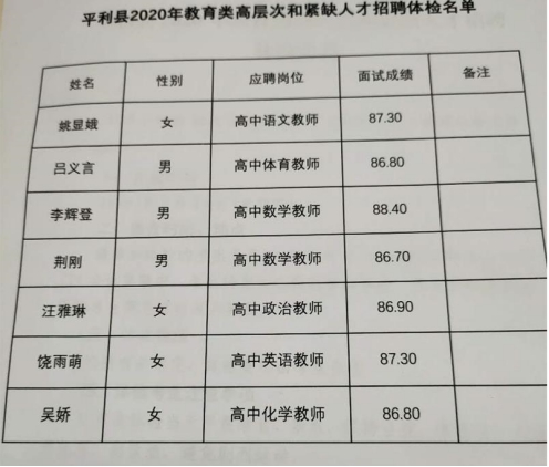 陜西安康市平利縣2020年教育類高層次和緊缺人才招聘體檢公告