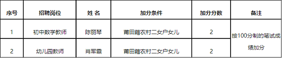 福建莆田北岸開發(fā)區(qū)關(guān)于2020年公開招聘新任教師加分情況的公告