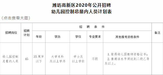 附件:濰坊高新區(qū)2020年公開(kāi)招聘幼兒園控制總量?jī)?nèi)人員計(jì)劃表