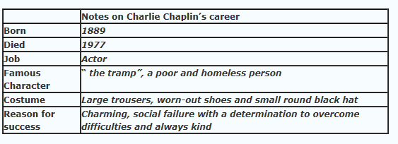 Find more information about Chaplin through The Internet or from books and you are expected to present it to your classmates in the next class.