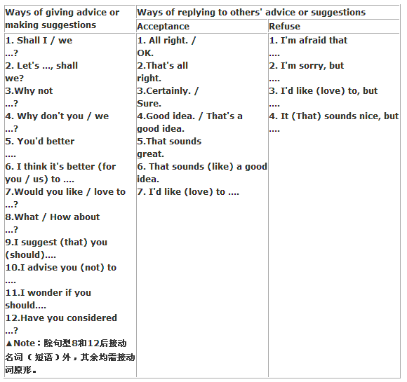 1. Language Input:In our everyday life, we quite often ask our friends or relatives for advice or suggestions on what to do or what not to do. And in English there're several ways of giving advice or making suggestions.