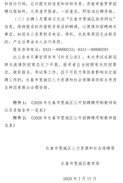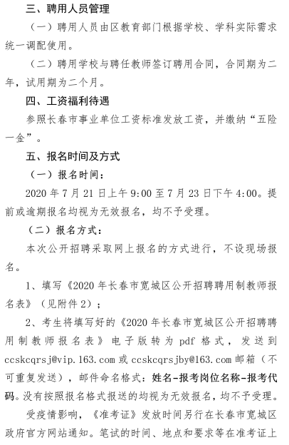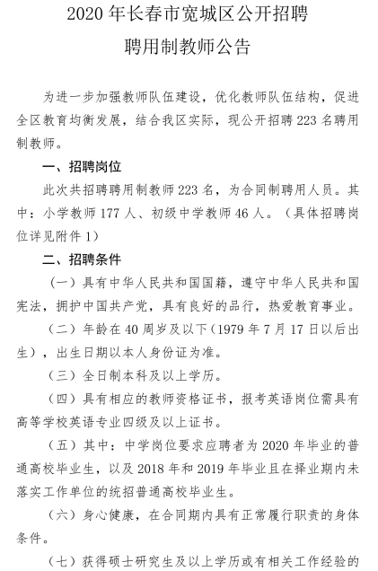 2020年吉林教師招聘 吉林長(zhǎng)春市寬城區(qū)招聘聘用制教師公告【223名】