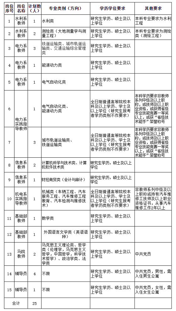 2020年福建水利電力職業(yè)技術(shù)學(xué)院第三批公開招聘工作人員【25人】
