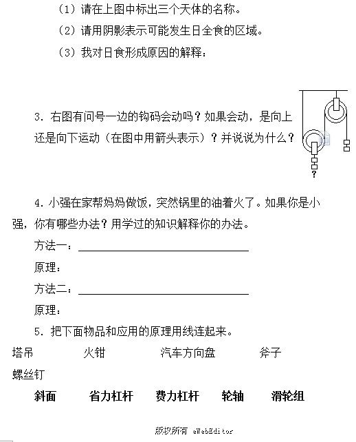 9.向螺絲刀那樣,由一個(gè)較大的 與一個(gè)較小的 組合在一起的簡單機(jī)械叫做 。