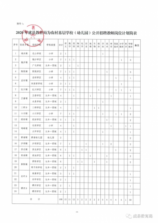 2020年甘肅隴南市成縣教育局為農(nóng)村基層學(xué)校(幼兒園)公開(kāi)招聘教師公告【100人】