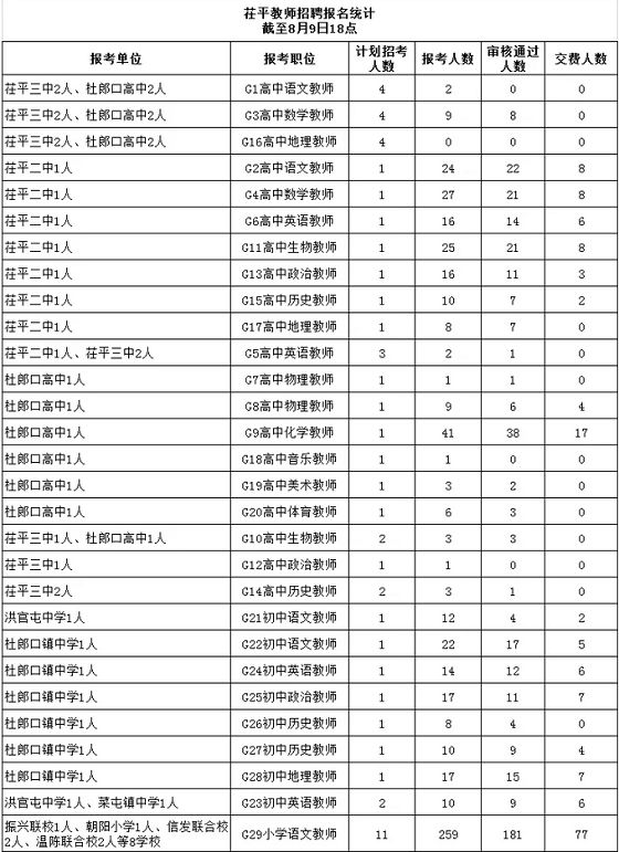2020聊城教師招聘 茌平教師招聘報名情況8.9日18點最新統(tǒng)計