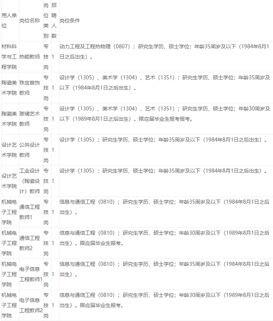 2020年景德鎮(zhèn)教師招聘 江西景德鎮(zhèn)陶瓷大學公開招聘碩士人才公告(含教師15人)