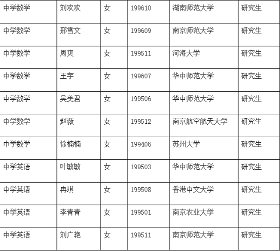 根據(jù)《2020年蘇州市吳中區(qū)教育局高層次青年人才選聘公告》,經(jīng)過(guò)考核、體檢和政審合格,擬錄用以下27名同志,現(xiàn)公示如下:
