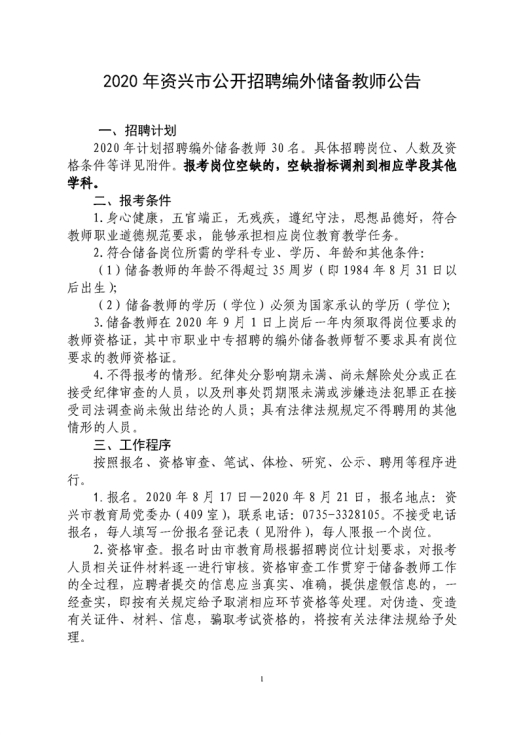 2020年湖南郴州資興市招聘編外儲備教師公告【30人】