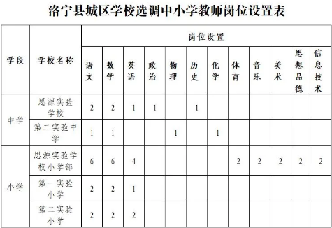 2020年洛陽教師招聘 河南洛陽洛寧縣部分城區(qū)學(xué)校公開選調(diào)教師工作實(shí)施方案【48人】
