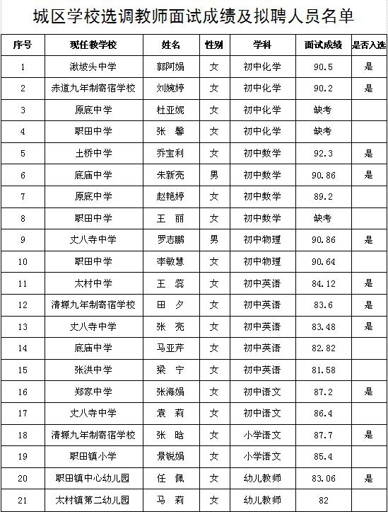 附:城區(qū)學(xué)校選調(diào)教師面試成績(jī)及擬聘人員名單