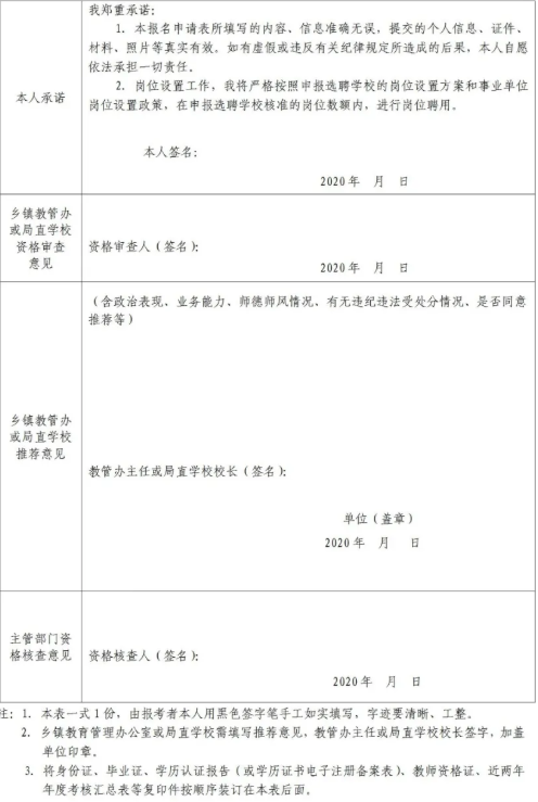 1.襄城縣文昌小學(xué)2020年公開選聘教師報名申請表