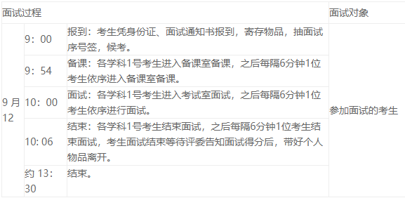 1.面試時(shí)間:2020年9月12日,請(qǐng)參加面試的考生于當(dāng)天上午9:00前進(jìn)入考場。