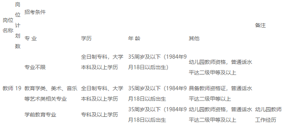 2020年經(jīng)開區(qū)公辦幼兒園教師招聘崗位及條件