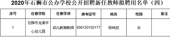 2020年泉州教師招聘 石獅市公辦學校公開招聘新任教師擬聘用名單公示(四)