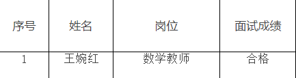 根據(jù)《思明區(qū)教育系統(tǒng)非在編聘用人員公開招聘實(shí)施細(xì)則(廈思教〔2014〕95號(hào))》及《廈門市濱北小學(xué)公開招聘非在編教師簡(jiǎn)章》要求,現(xiàn)將擬聘用人員的面試考核結(jié)果公示如下:
