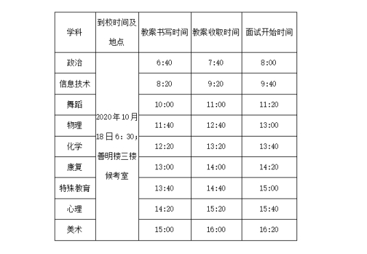 3.分學(xué)科在指定面試室按照教案課題進行說課與答辯。
