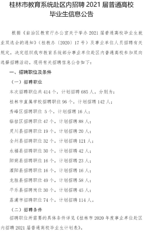 2020廣西桂林市教育系統(tǒng)赴區(qū)內(nèi)2021屆普通高校畢業(yè)生教師招聘公告【685人】
