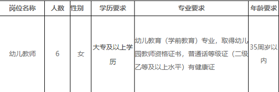 本次計劃招聘幼兒教師6人。具體崗位信息見下表。